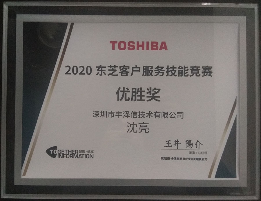 TOSHIBA東芝客戶服務(wù)技能竟賽優(yōu)勝獎(jiǎng)