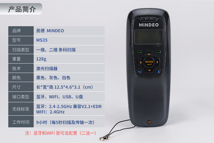 MS3590是一款基于C編程語(yǔ)言的輕量級(jí)數(shù)據(jù)采集器。采用MINDEO自主研發(fā)的圖像處理技術(shù),可輕松、快速識(shí)讀國(guó)內(nèi)、國(guó)際通用的1D/2D條碼,可配置Bluetooth或Wi-Fi無(wú)線(xiàn)通信模塊。    重量輕、體積小,可以輕松放入口袋,攜帶方便。符合人體工學(xué)的設(shè)計(jì),握感舒適。配備智能輔助光照調(diào)節(jié)