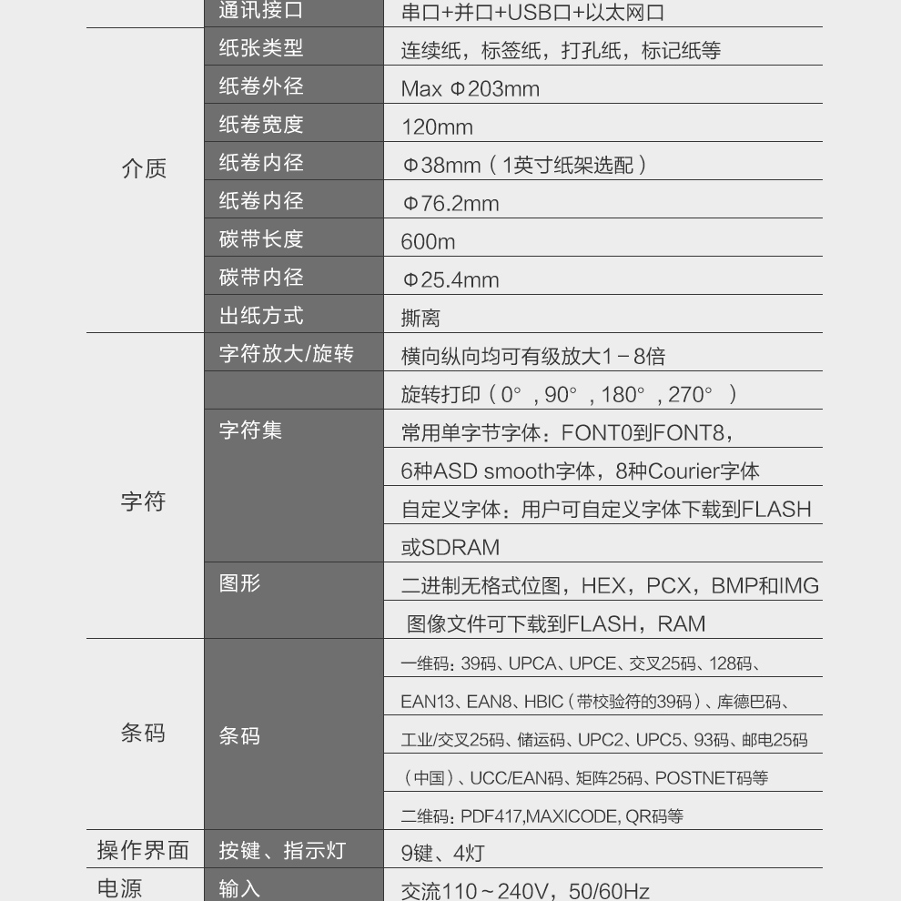 | 介質(zhì) | 介質(zhì)類型 | 標(biāo)簽紙(包括銅版紙/PET/PVC)、標(biāo)記紙、連續(xù)紙、折疊紙、水洗嘜等 |