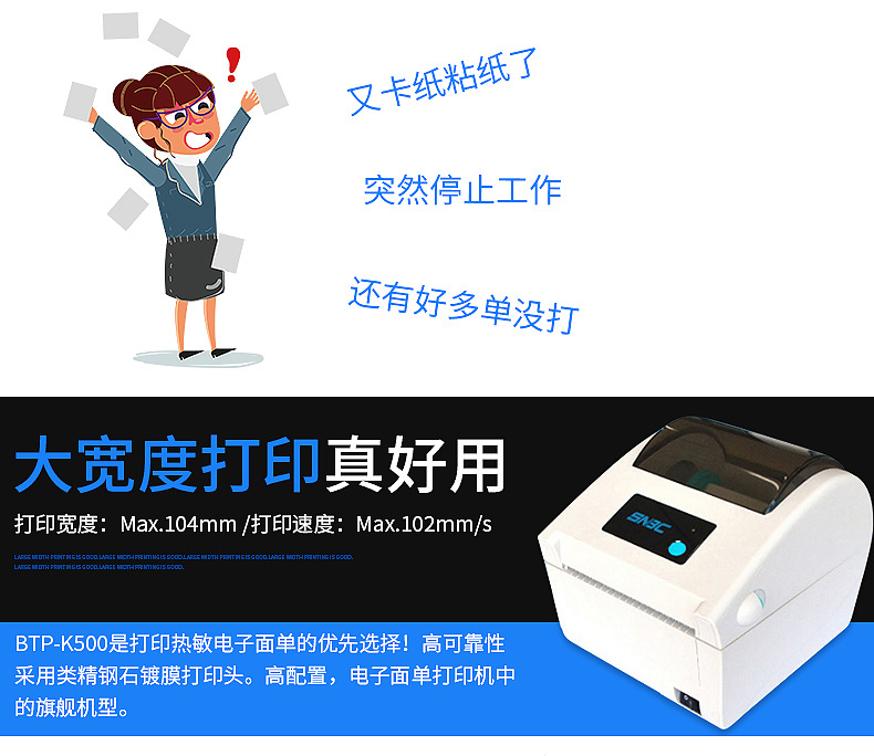BTP-K500是一款電子面單專用打印機(jī),業(yè)內(nèi)首家采用類金剛石鍍膜打印頭,使用壽命遠(yuǎn)超同行業(yè)水平40%以上,同時(shí)采用先進(jìn)熱歷史精密控制算法,批量打印效果始終清晰如一,是打印熱敏電子面單的最佳選擇。